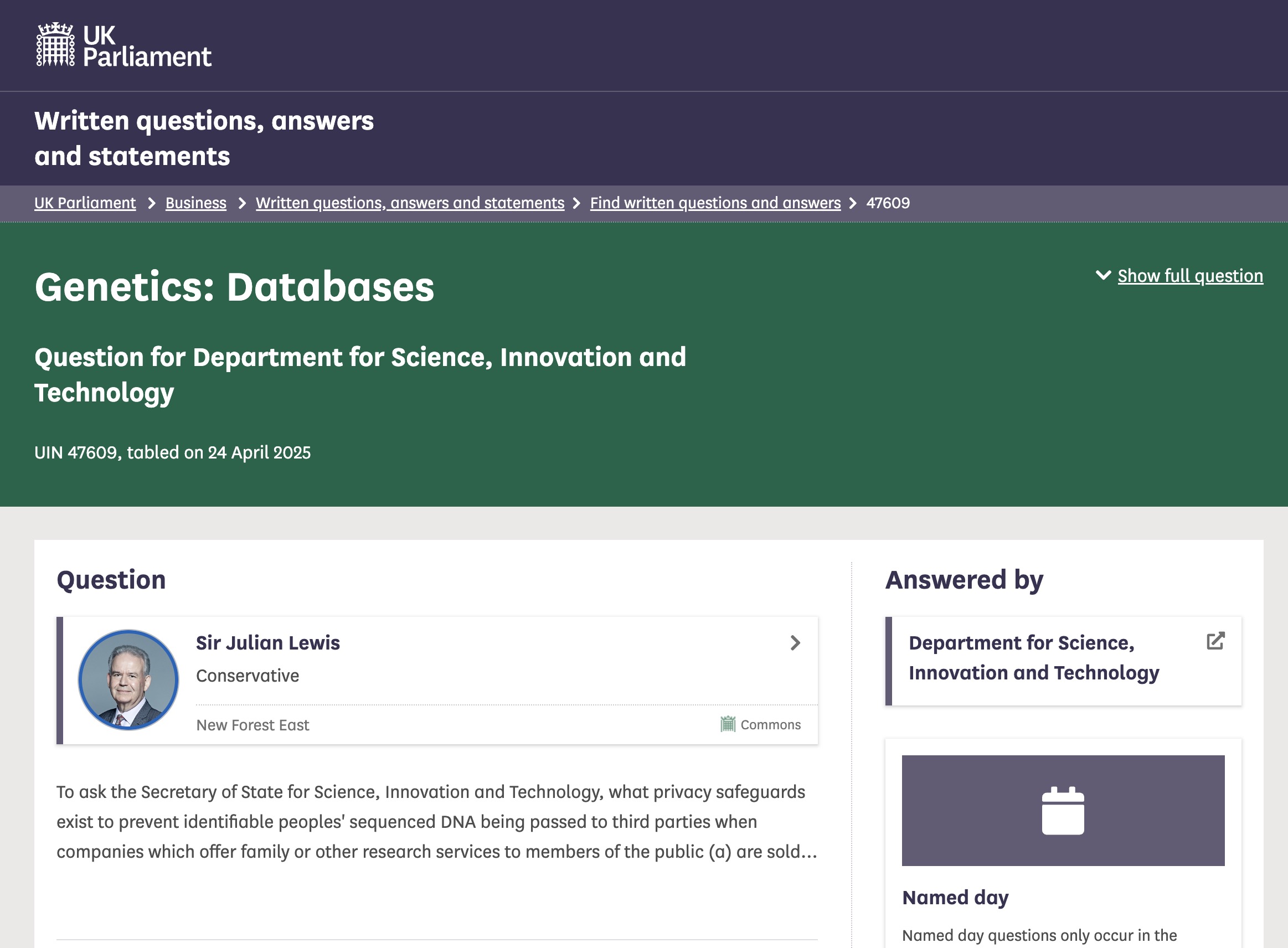 Following our recent political engagement, we were delighted that Sir Julian Lewis MP (Con, New Forest East) has tabled an extremely pertinent question to the Department for Science, Innovation, and Technology (DSIT):